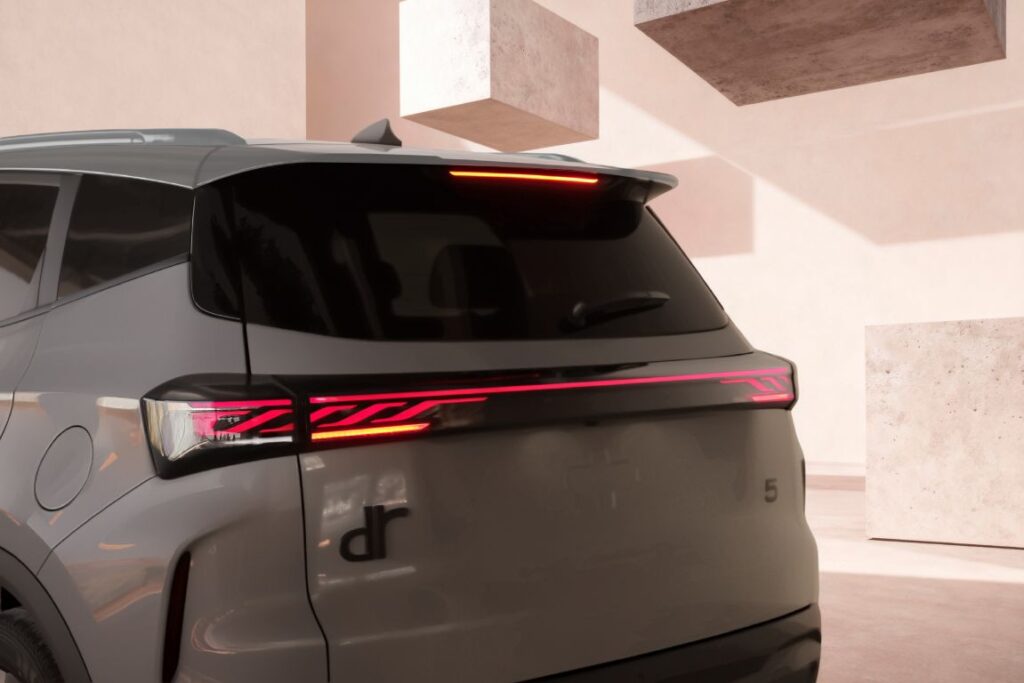 DR 5 si distingue per le sue linee moderne ed eleganti: un design compatto che si adatta perfettamente alla città senza rinunciare a un tocco di classe. Il frontale prevede una griglia ben definita con fari Full LED che, nelle versioni superiori, offrono un’illuminazione efficace e un’ottima visibilità anche in curva.